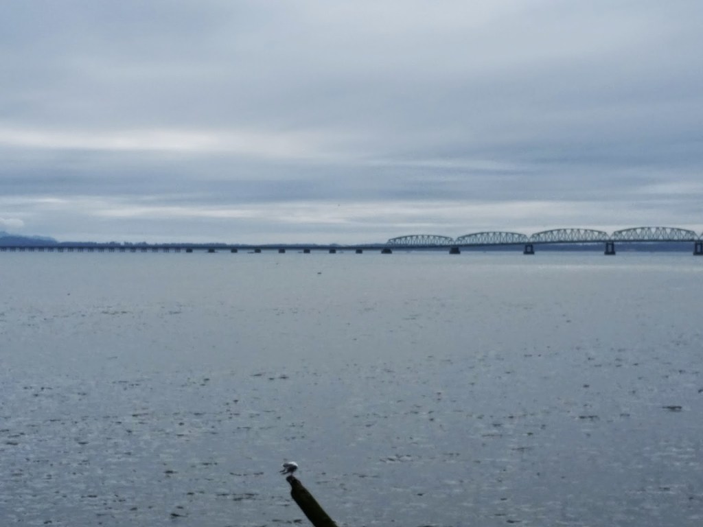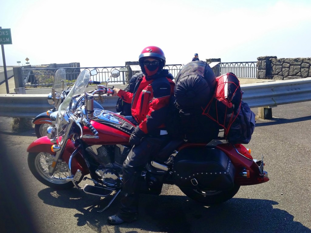 As we passed into Oregon, we crossed the Astoria bridge. The Columbia River empties into the ocean here, and the bridge is some four miles long. We were stopped by the ongoing construction, and spent some ten or so minutes feeling the bridge panel shake whenever a car went over—and a steady stream kept us moving. We were about a hundred feet above the water. That was more nerve-wracking than all the traffic on the twisties along the coast.