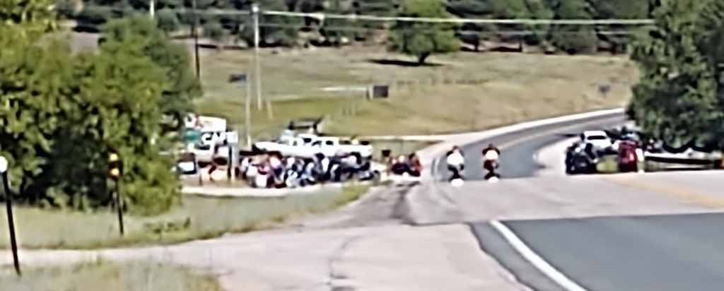 Midweek, we met one of our friends on the outskirts of Sturgis and rode to Devil’s Tower in Wyoming along the scenic route. We found a crowd at one of the party places along the way. Even though we needed to refill our water bottles, we decided to stop away from the crowds to reload our refreshments. On a mission to step foot in all fifty states, our other companion rode to North Dakota to add another state to the list.