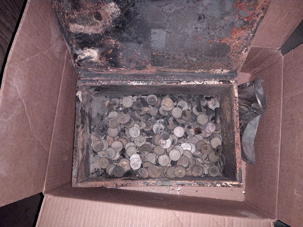 While I didn’t find what I had hoped, First Reader managed to find a couple of lockboxes in which she kept collector coins. Some coins survived; others did not.