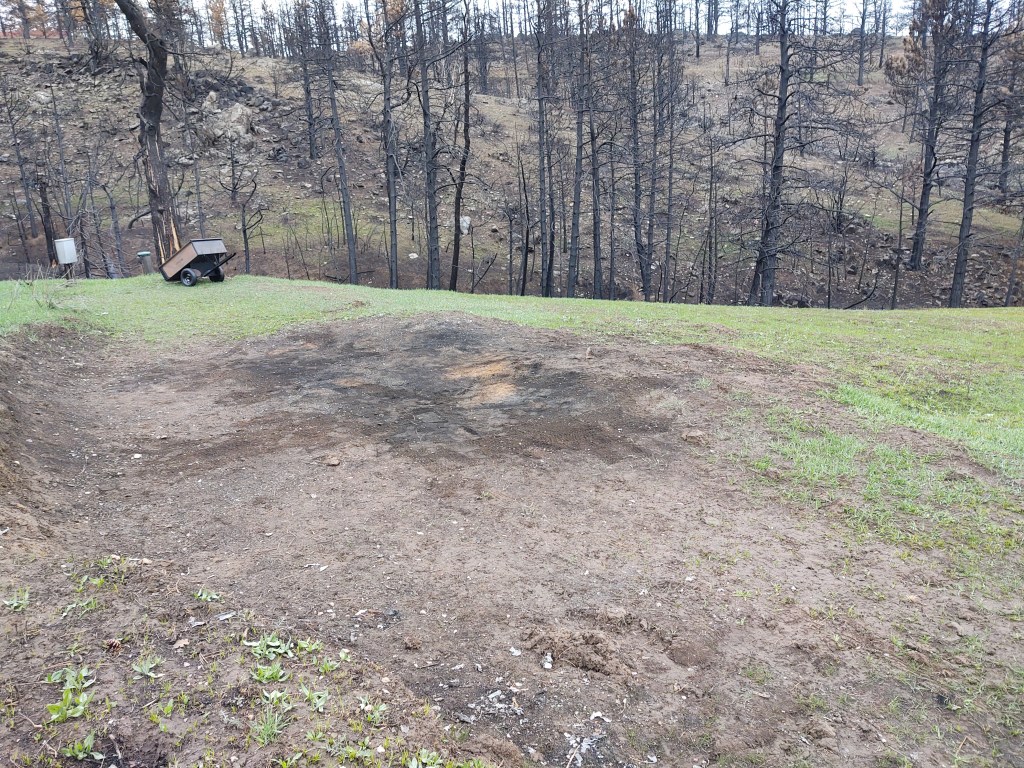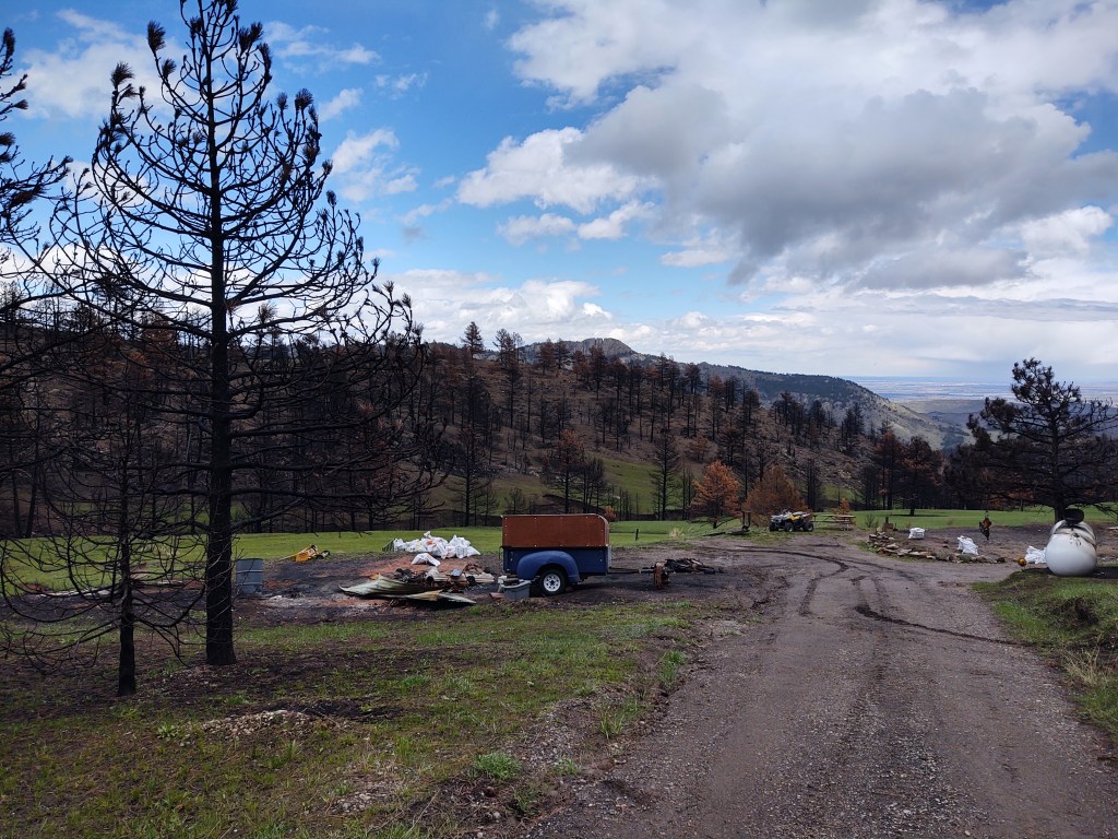 Last Sunday, we put out a call to friends and family to help us get the rest of the ash and debris bagged up and ready to cart off to the nearest recovery dumpsters. The snafu, of course, was a lack of keys. We thought we forgot them. Well, as we were leaving, First Reader found them. We decided to go back another day. That other day turned out to be Thursday. With the help of another family member, First Reader and I made sure the load was centered correctly on the trailer; then we made the slow descent down the mountain.