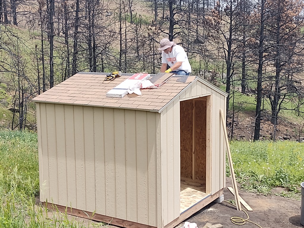 I got to work on my sunburn some more on Thursday when our donated shed finally arrived.