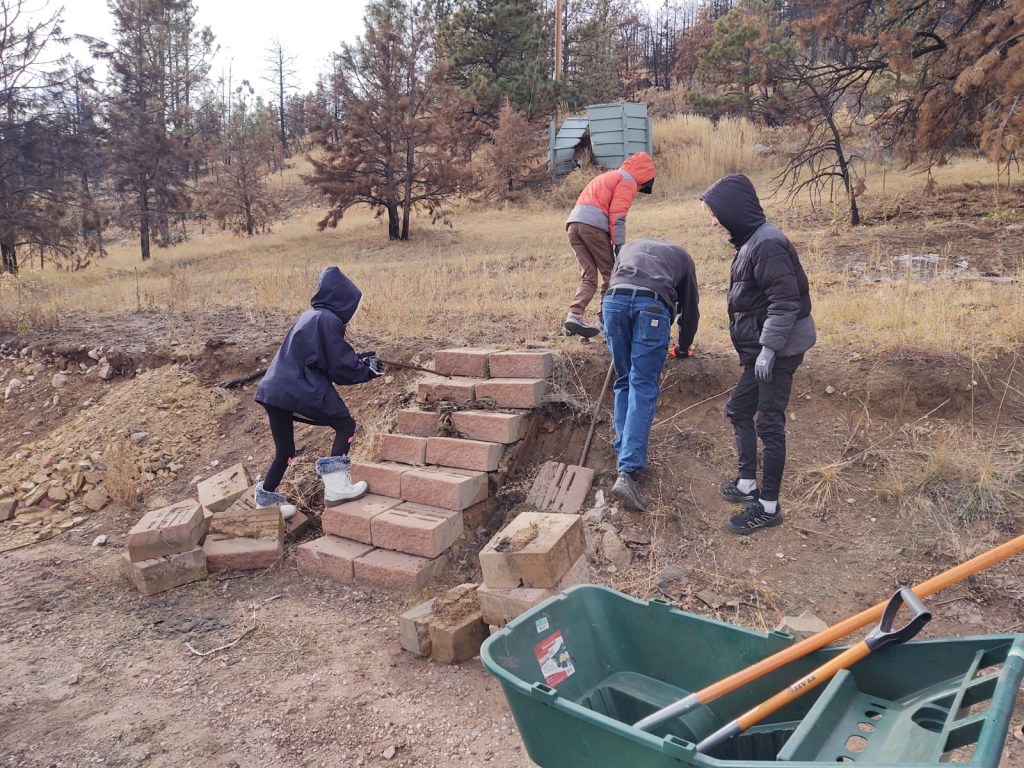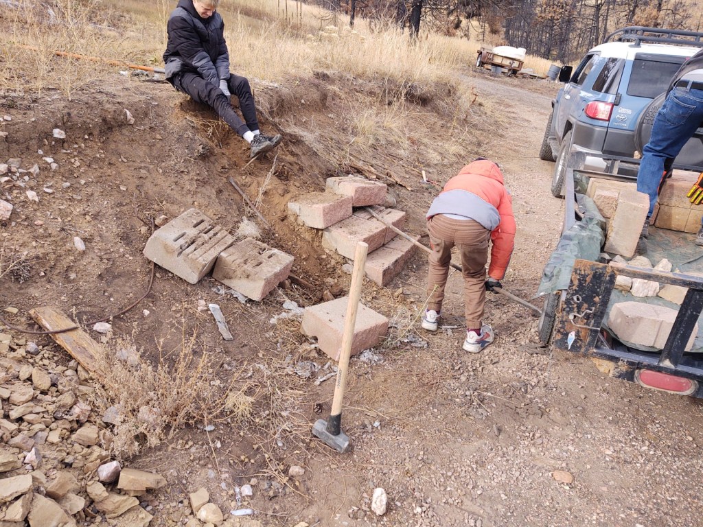 In the meantime, we had a set of steps and a rock wall to move if we wanted to save the materials. Which, of course, we do. Yesterday, we gathered a few of our younger family members and moved blocks and rocks.