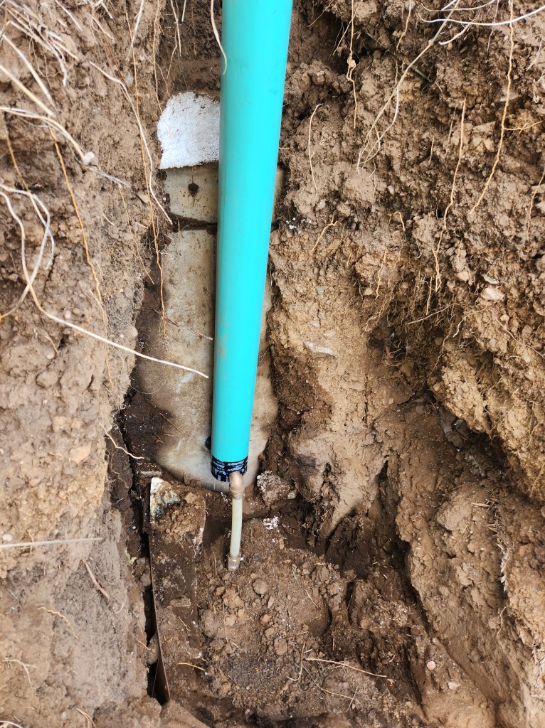 This time, we went with the recommendation of the well technician. They installed a pipe from the valve at the bottom of the cistern to the surface. We’ll bury the tube and use a key to turn the spigot.