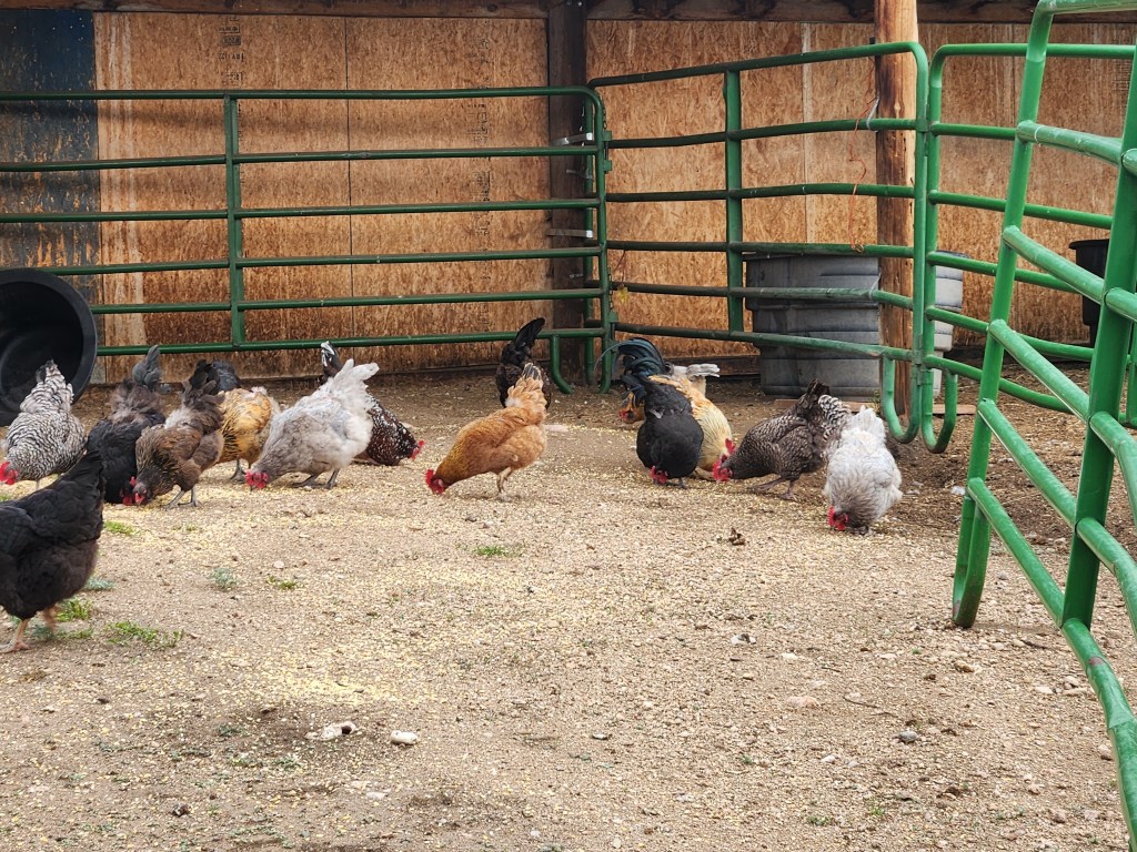 We drove up for lunch a little more than a week ago, to meet the critters and get a first-hand view of the routine. They showed us where they store the chicken feed and house the chicks. Our friends left a note with instructions so we wouldn’t miss anything. They turned the horses out to pasture, but the girls have access to the corral and cover. They’ve been coming in daily to slurp water and nibble carrots from my hands.