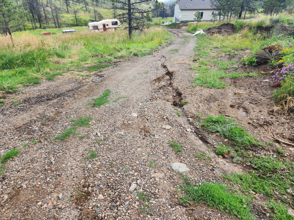 The rain takes its toll on the burn scars, as well as any new building going on. Flood warnings are in effect for the Cameron Peak Fire () burn scar. One area of the main burned area is already closed because of recent heavy downpours. Our driveway is suffering from the heavy rain and lack of traffic. (:-/)