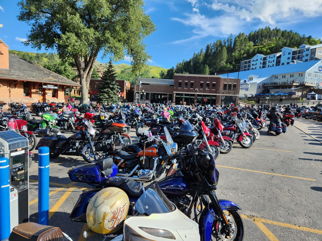 Main Street in Sturgis is always interesting as bikers jockey for parking. The city closes off four blocks of the main drag to automobile traffic, so it’s motorcycles only during rally week. Practically everyone wants to park on Main Street, just to say they can. Or for convenience. Either way, it’s jammed with people; and the roaring motorcycles add to the sensory overload. I’m good for an afternoon, then I’m ready to get back on the bike.