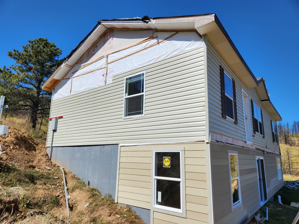 The finishing crew (just two guys) has been getting the siding up on the ends when both are available.