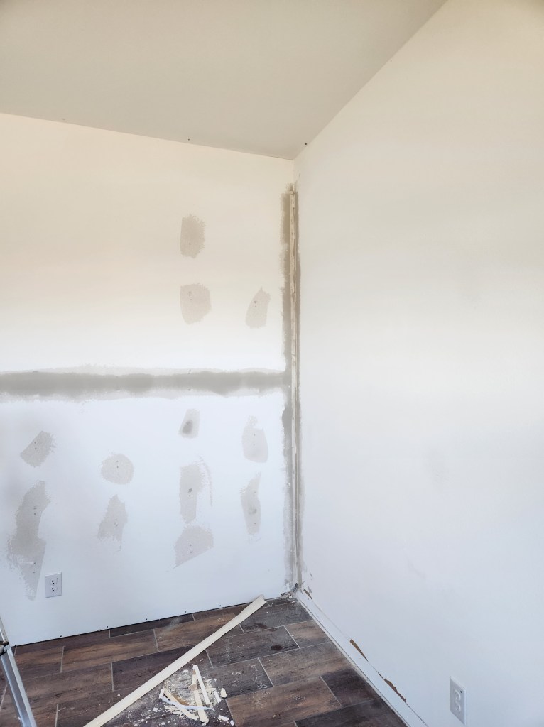 Office wall before repairs.