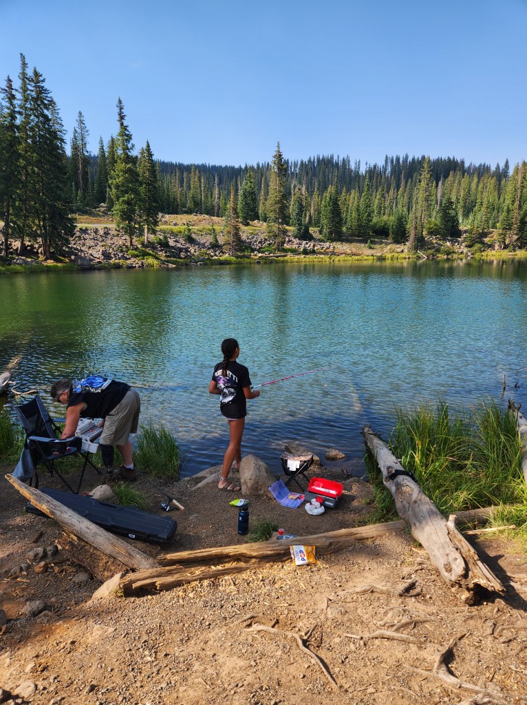 We stayed on the Western Slope for a few days after the conference to fish on the Grand Mesa. I got my line wet, tangled in the reel (twice), and lost my bait (multiple times). The most notable part of the day was when I slipped on the slimy rock trying to recover my rigging. The bruise is turning very interesting colors. *shrug* No, we didn’t catch anything but snags the days we spent fishing. The Grand Mesa has more than 300 lakes pocking the 500-sq mile plateau, so I’m sure we would have found fish somewhere. But, as my friend said when I mentioned our fishing failure, “so many lakes, so little time.”